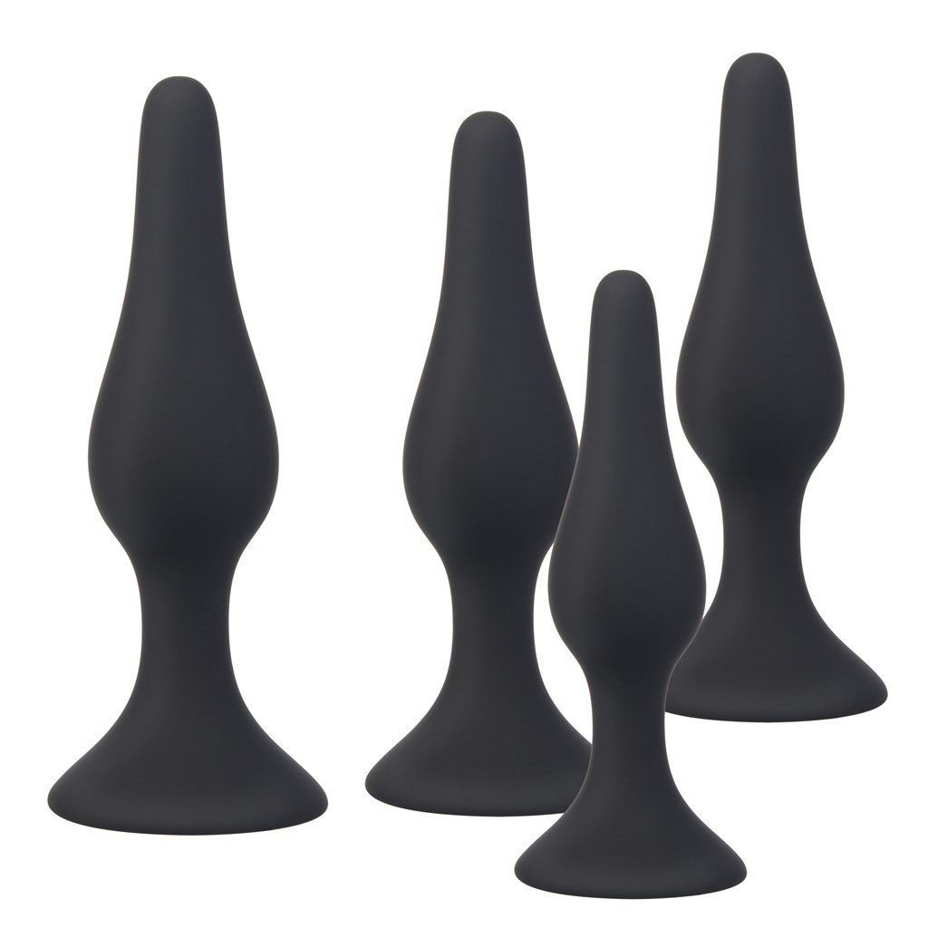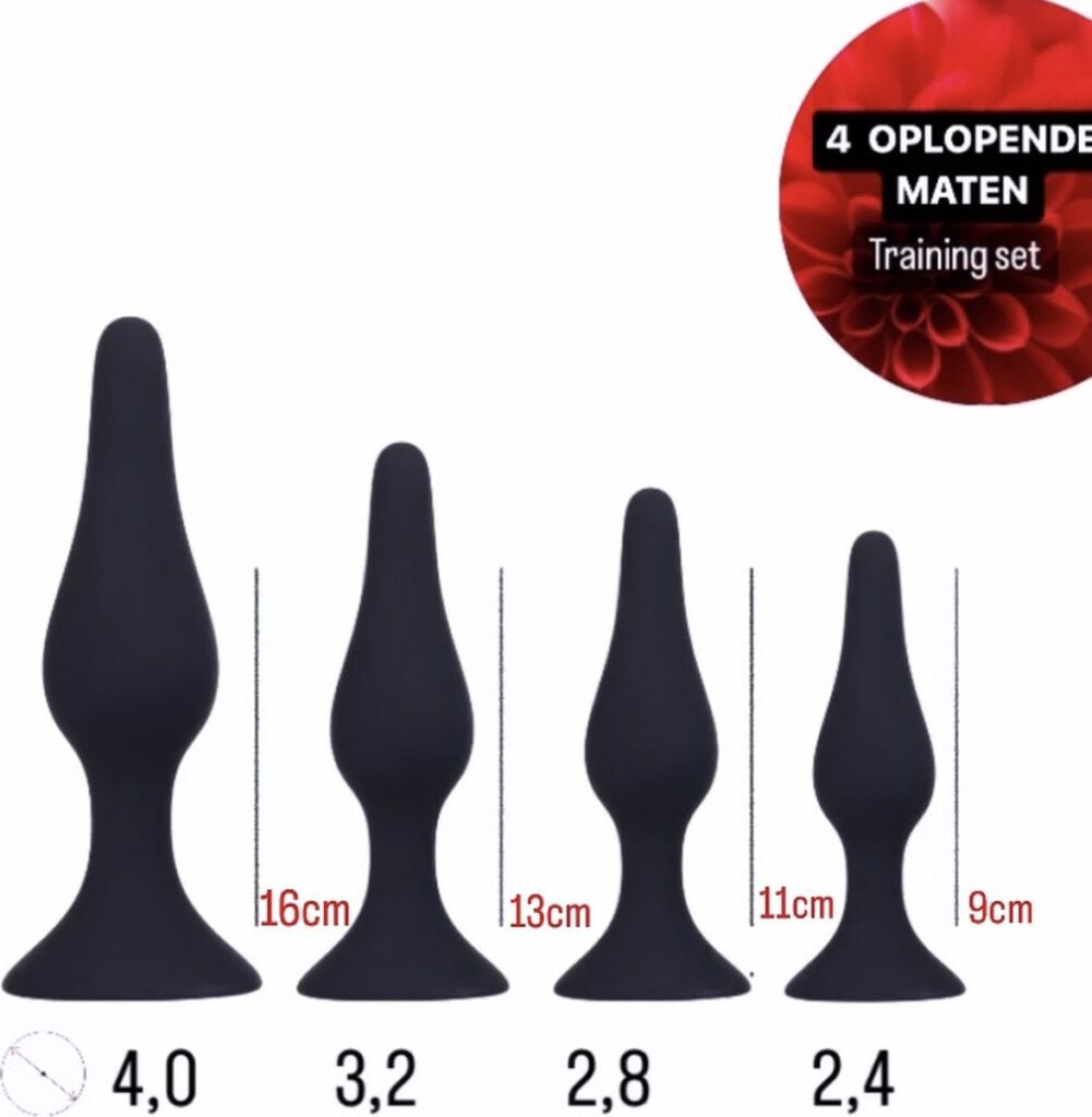 De set bestaat uit flexibele kunststof butt plugs, ideaal voor training en comfort.