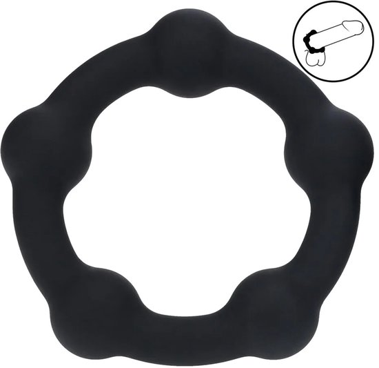 Deze veelzijdige penisring met stimulerende kralen, vervaardigd van lichaamsveilige siliconen, in de maat Large.