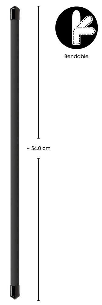De zacht beklede metalen staaf kan moeiteloos in verschillende vormen worden gebogen of gedraaid.
