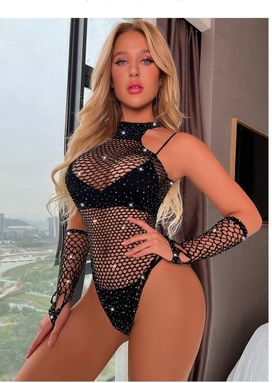 Daarbij is de hoog opgesneden body door de glitter steentjes erg sexy.