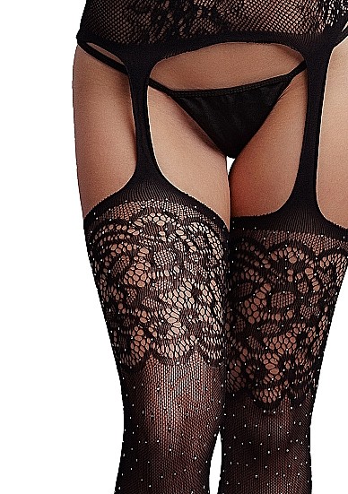 Deze sexy jarretel bodystocking met diepe V-hals en spaghettibandjes straalt sexappeal uit.