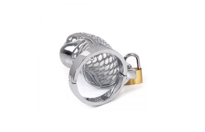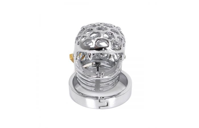 plaats de kooi en de ring over zijn schacht en sluit af met het slotje.
