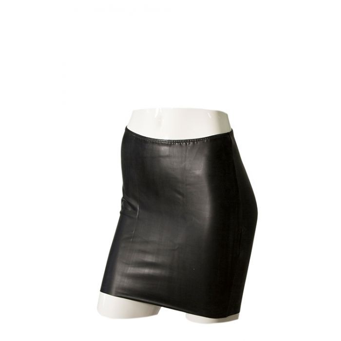 De rok is gemaakt van zwart latex voor een extra kinky uitstraling.