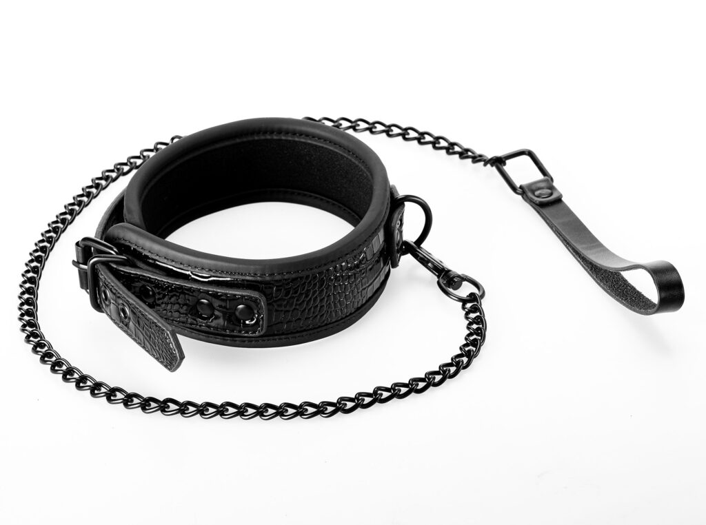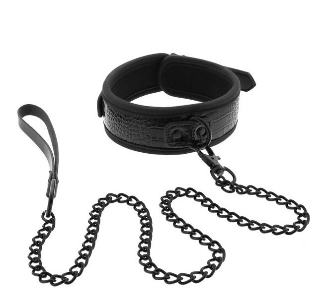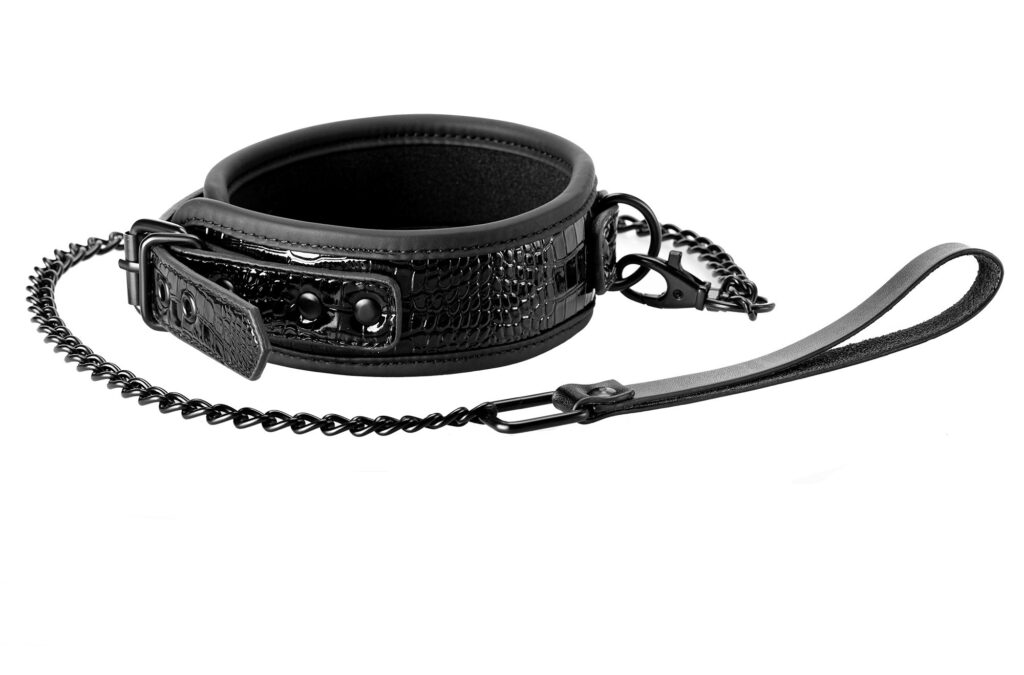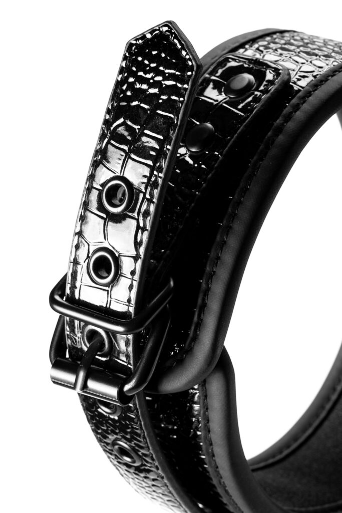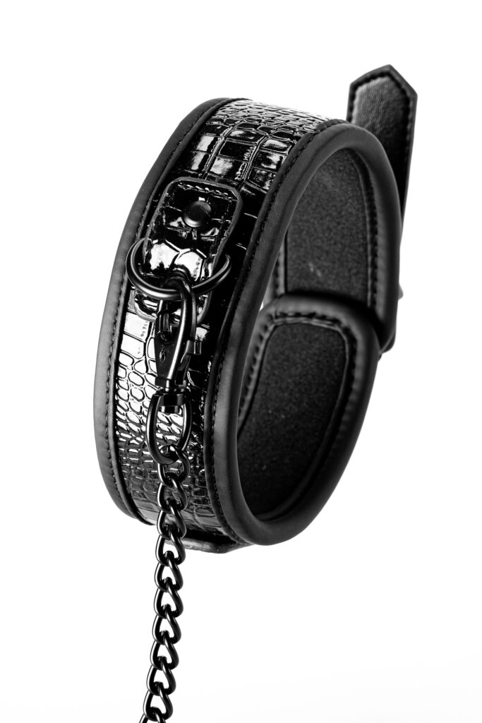 De halsband is verstelbaar en is te sluiten met een gespsluiting.