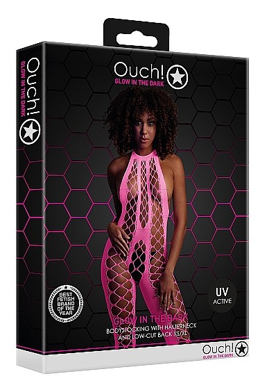 Deze prachtige bodystocking heeft een opvallende halternek en een laag uitgesneden rug.