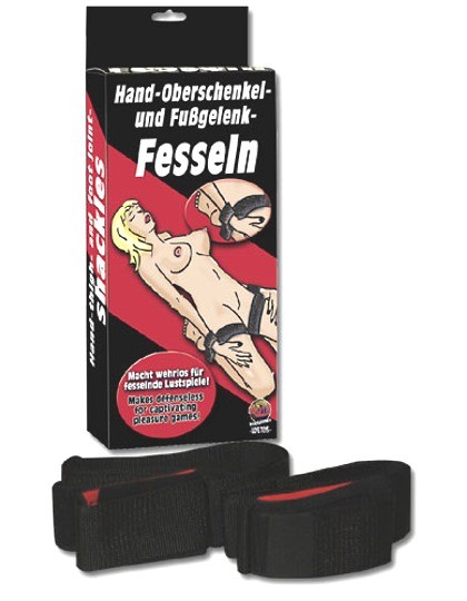 Maak Haar/Hem in deze rugpositie weerloos voor dit bondage genot!! De riemen op de bovendijen aanbrengen en de handen en voeten met de daaraan bevestigde hand-resp. voetgewrichtmanchetten buiten gevecht zetten. Manchetten en riemen zijn van elastisch nylon, met klittebandjes individueel verstelbaar. De handgewrichtmanchetten hebben een zachte opvulling.