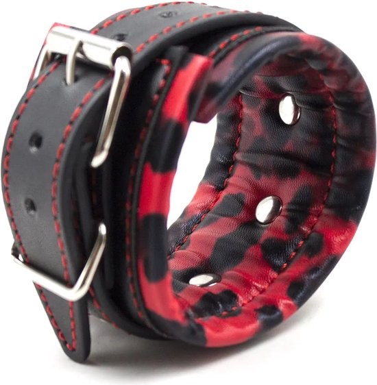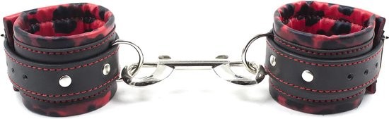 deze rode handboeien met luipaardprint bieden een opwindende en verleidelijke manier om je fantasieën tot leven te brengen.