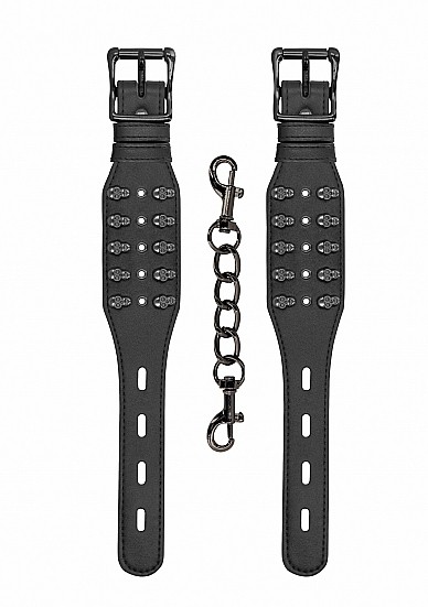 Met twee rijen kleine schedels, een enkele sluiting op elke handboei en een