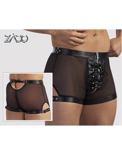 Zwarte short van materiaal combinatie van Leder en transparante elastische powernet (85% Polyamid, 15% Elasthan).