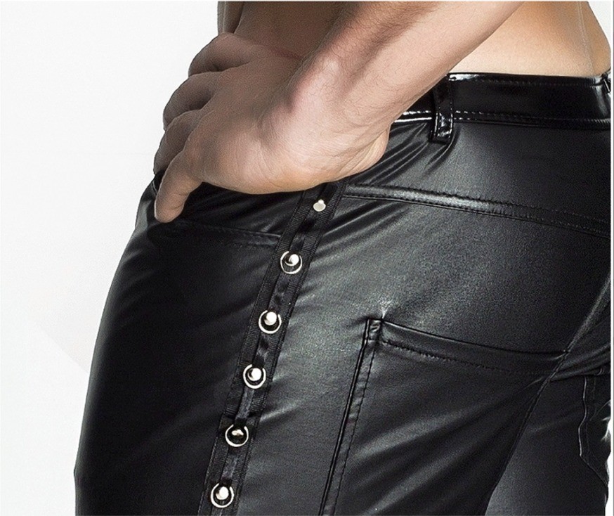 Stoere wetlook broek uit de nieuwe Noir Handmade collectie ‘Stronger Men”.