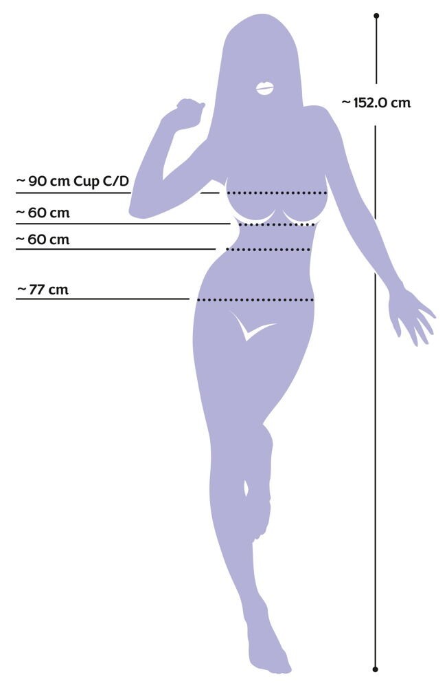 in een oosterse stijl met een petite figuurtje en een paar extra grote stevige borsten.
