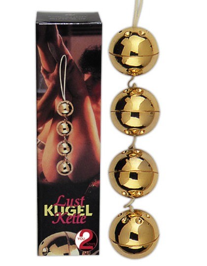 4 Goudkleurige lustkogels, waarin een kleine vibrobal ‘danst’