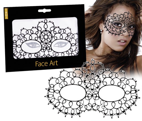 Zwart masker met steentjes.