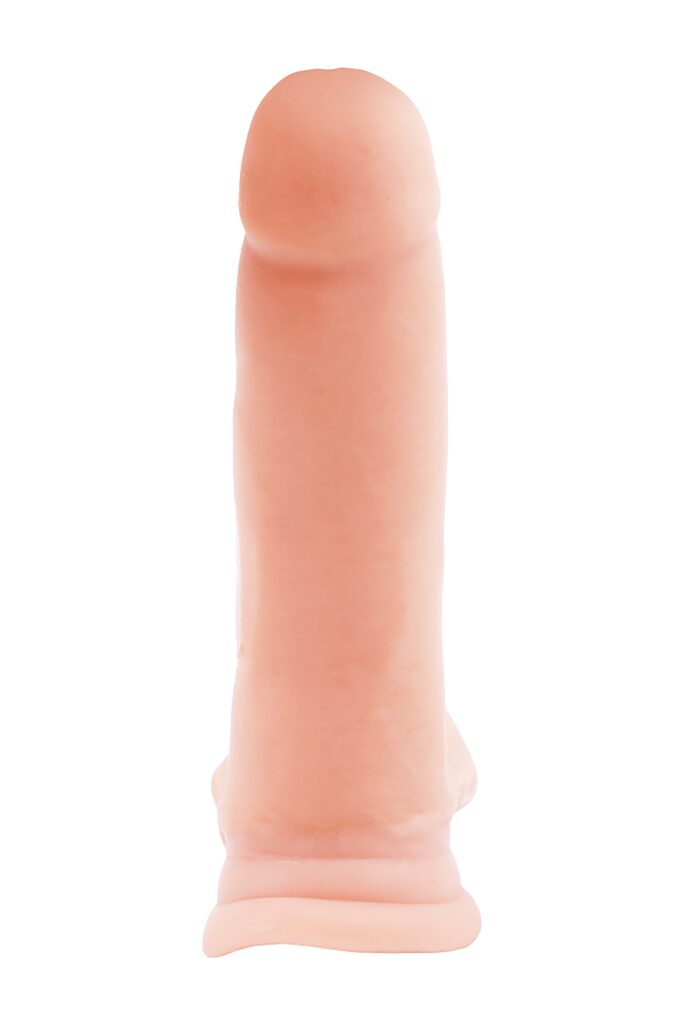 Deze dildo heeft een scrotum, een eikel en aderen die hem een levensechte look