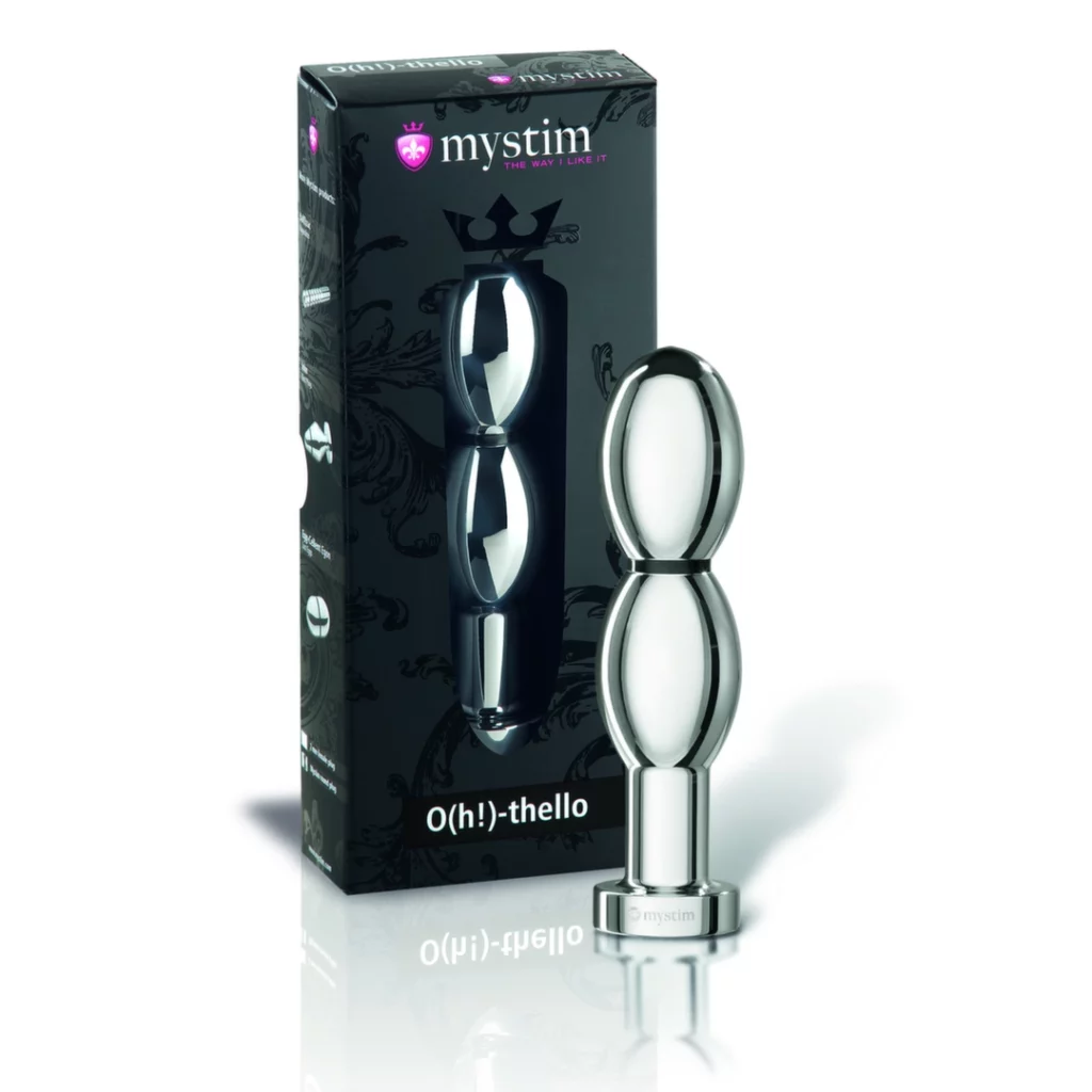 De prachtig gevormde bipolaire dildo O(h!)-thello is ontworpen voor gebruik met de Tension Lover of Pure Vibes elektrostimulatieapparaten van Mystim.