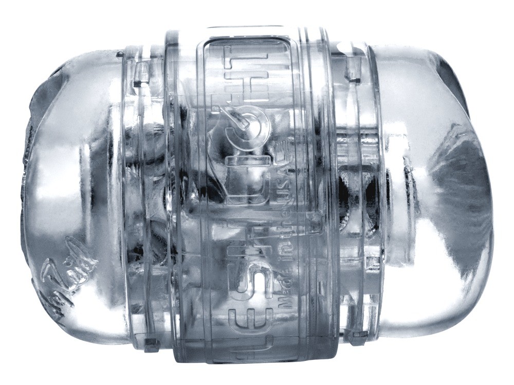 Door het transparante materiaal kun je precies zien wat er in de fleshlight gebeurt.