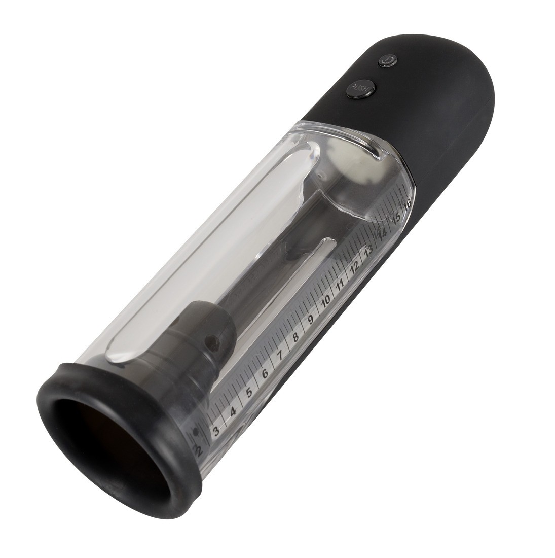 Plaats uw penis in de transparante cilinder met centimeterschaal en schakel de