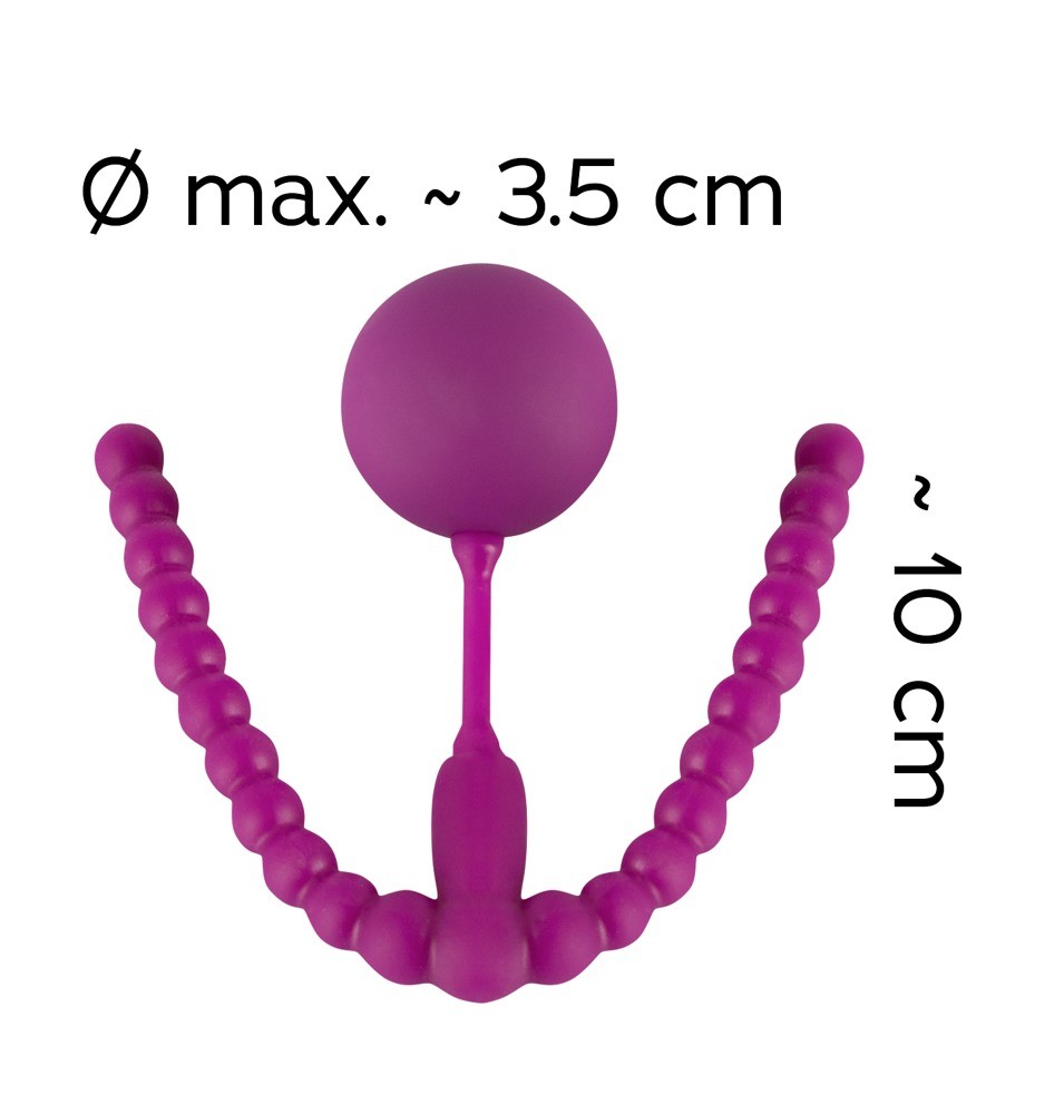Totale lengte 19,4 cm, Ø kogel 3,5 cm, gewicht 46 g. Siliconen, PU.