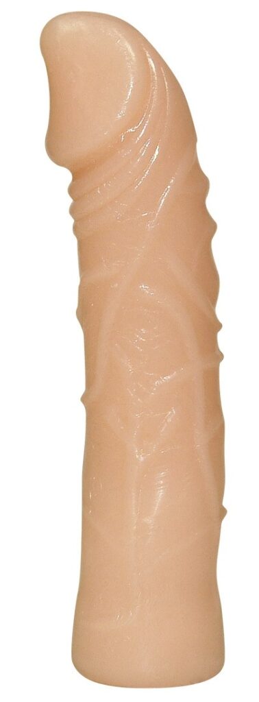 Bijgeleverde dildo’s uit lichaamvriendelijk materiaal ( TPE), één in penis – natuurdesign ( 19 cm lang< doorsnede van 3,5 cm, één met lustnoppen