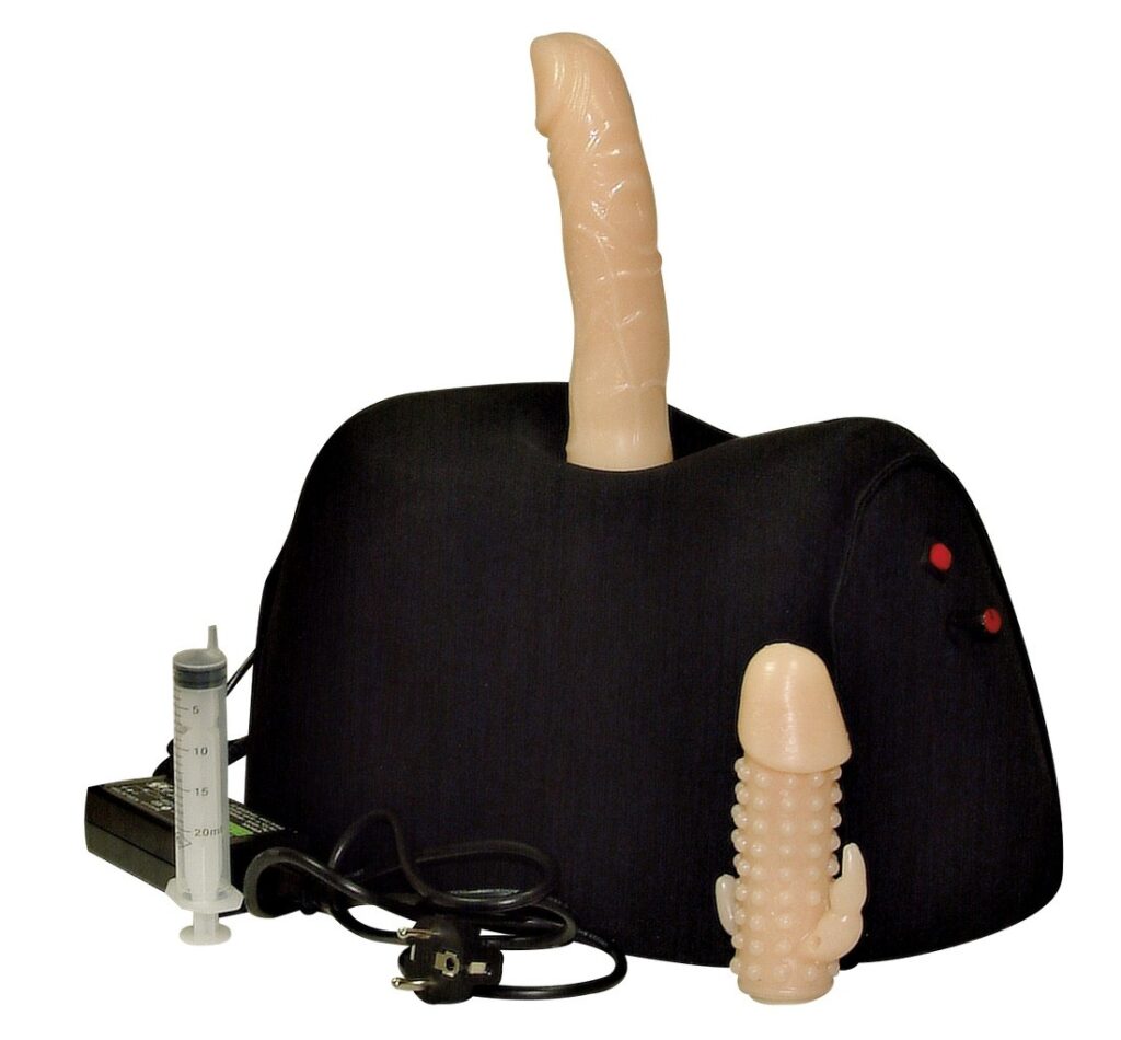 Gewoon de stekker in het stopcontact steken, een van de twee bijgeleverde dildo’s erop schroeven en het wilde