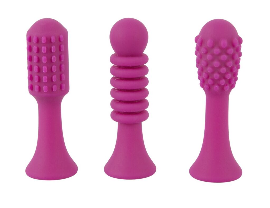 Aanzetstukken in 3 stimulatiestructuren: gegroefd, nopjes over de hele lengte en glad/nopjes.