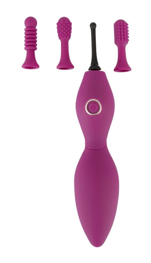Handige lichtgewicht vibrator met 3 verschillende, gemakkelijk verwisselbare opzetstukken