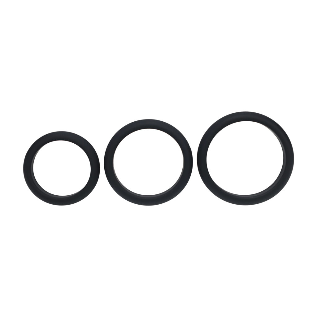 Deze collectie omvat drie lichaamsveilige siliconen penisringen in de maten large, extra large en XXL.