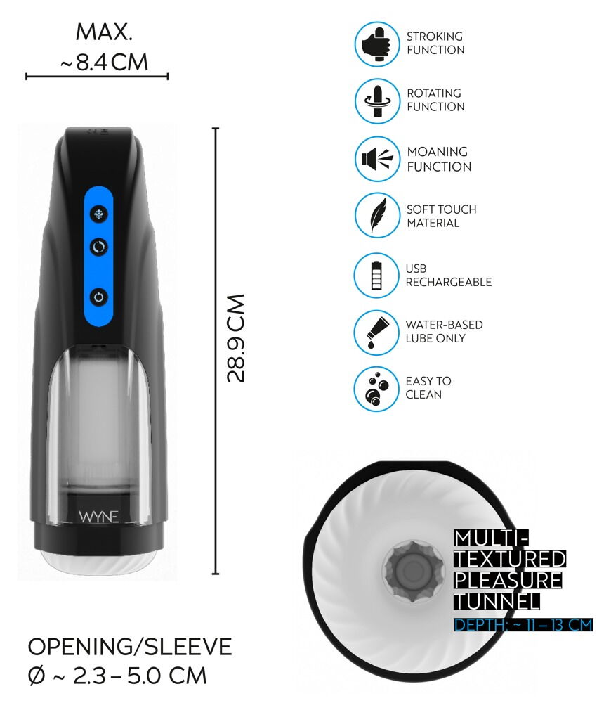 De revolutionaire WYNE 09 masturbator verwent je volledig dankzij zijn unieke, roterende en op-en-neer bewegende binnenhuls.