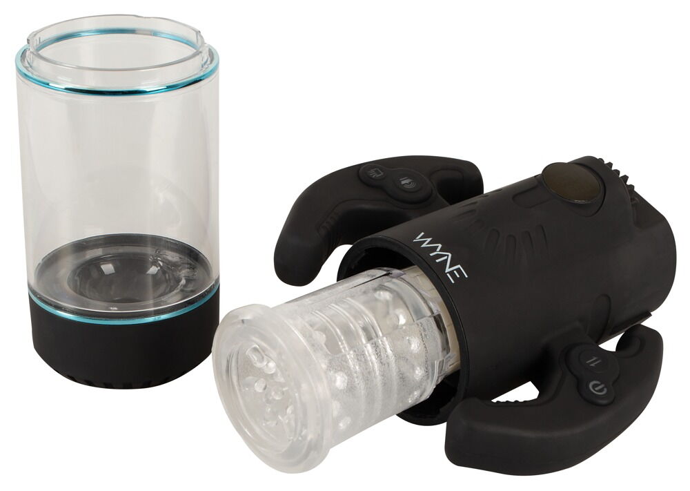 De krachtige Masturbator 11 van WYNE met dubbele motor masseert de penis rondom in de opwindend roterende, op-en-neergaande binnenhuls.